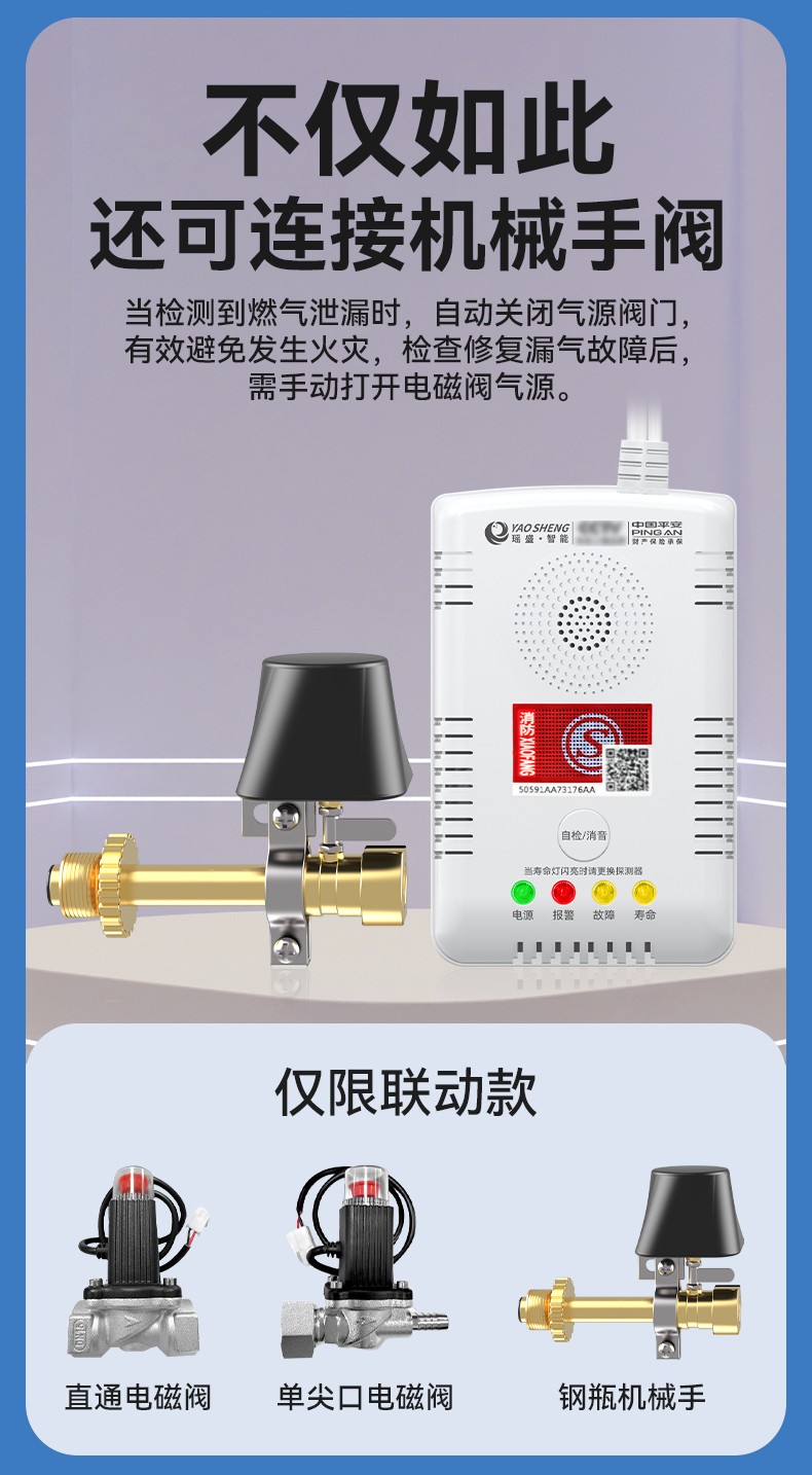 燃氣報警器 (型號PA-219) 產(chǎn)品規(guī)格 功能特點 資料下載 燃氣報警器 (型號PA-219)1、多種氣體檢測2、90分貝高音報警3、探測靈敏4、故障質(zhì)檢5、聯(lián)動切斷燃氣6、中國平安保險7. 可連接機械手閥適用場景:適用于家庭廚房、酒店廚房、食堂、商場等場所