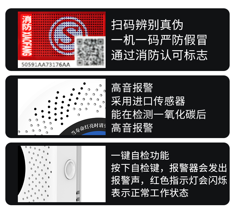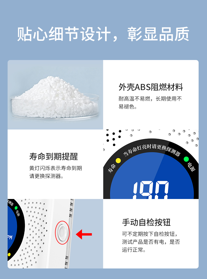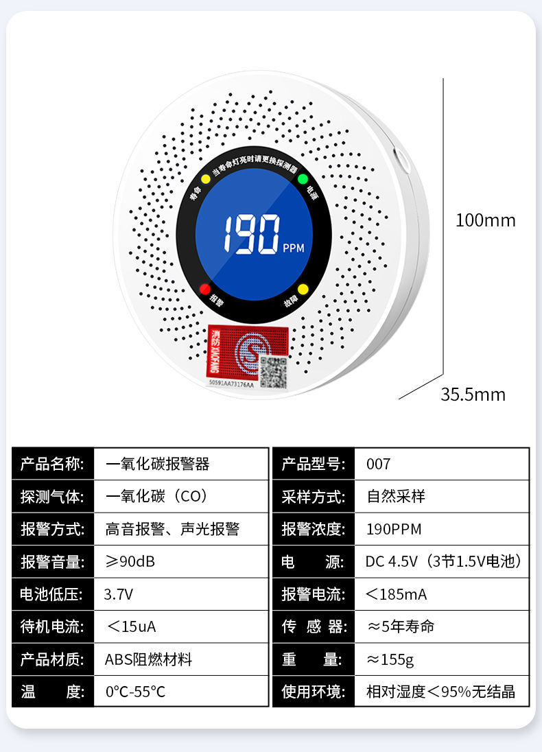一氧化碳報(bào)警器(型號(hào)PA-007) 產(chǎn)品規(guī)格 功能特點(diǎn) 資料下載 一氧化碳報(bào)警器(型號(hào)PA-007)1.探測(cè)氣體:一氧化碳2.報(bào)警方式:高音報(bào)警、聲光報(bào)警3.材質(zhì):ABS阻燃材質(zhì)4.產(chǎn)品保險(xiǎn):1000萬(wàn)承險(xiǎn)適用場(chǎng)景:適用于廚房、浴室、起居室、火鍋包廂、飯?zhí)玫乳L(zhǎng)時(shí)間空氣不流通的場(chǎng)所安裝一氧化碳報(bào)警探測(cè)器