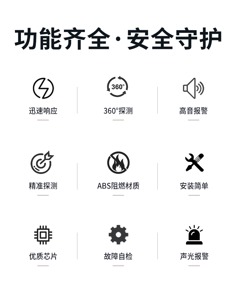 一氧化碳報警器(型號PA-008) 產(chǎn)品規(guī)格 功能特點 資料下載 一氧化碳報警器(型號PA-008)檢測氣體、燒煤、燒柴、燒炭、蜂窩媒、露營封閉環(huán)境、封閉車內(nèi)85分貝報警音量.LED液晶屏幕顯示故障自檢: 綠燈(正常)、黃燈 (故障、需要檢修) 紅燈(氣體濃度超標) 5.報警方式:蜂鳴聲提示 6. 產(chǎn)品保險:1000萬承險 7. ABS阻燃材質(zhì)適用場景:適用于廚房、浴室、起居室、火鍋包廂、飯?zhí)玫乳L時間空氣不流通的場所安裝一氧化碳報警探測器