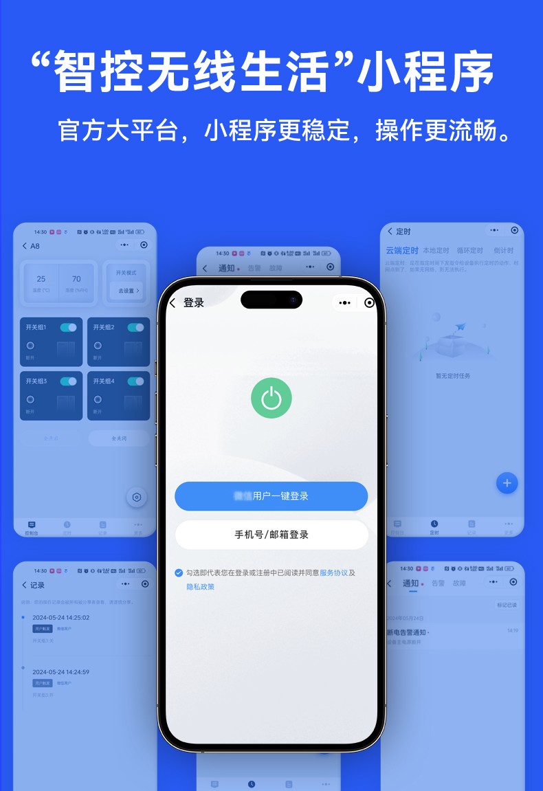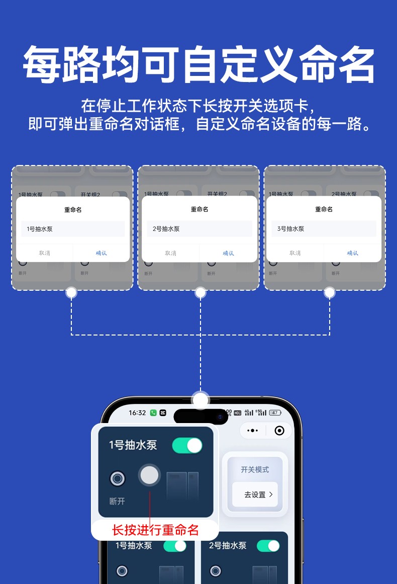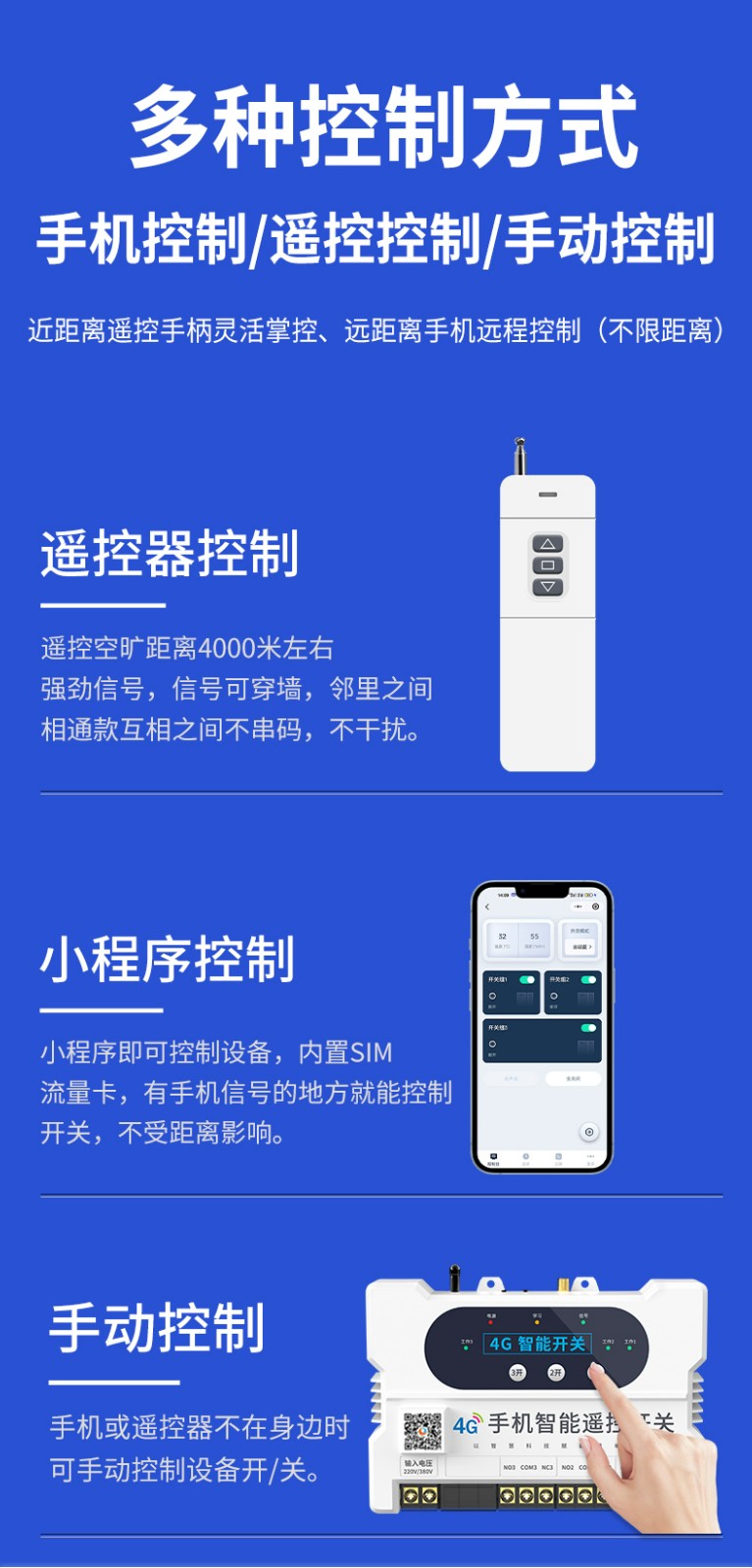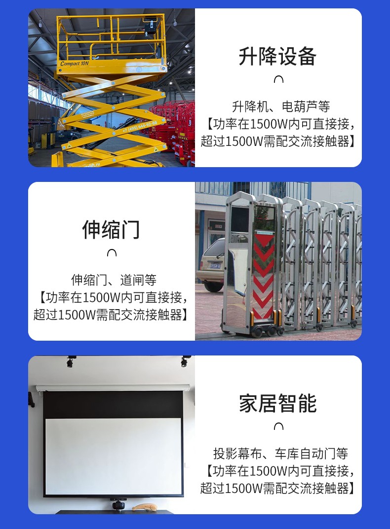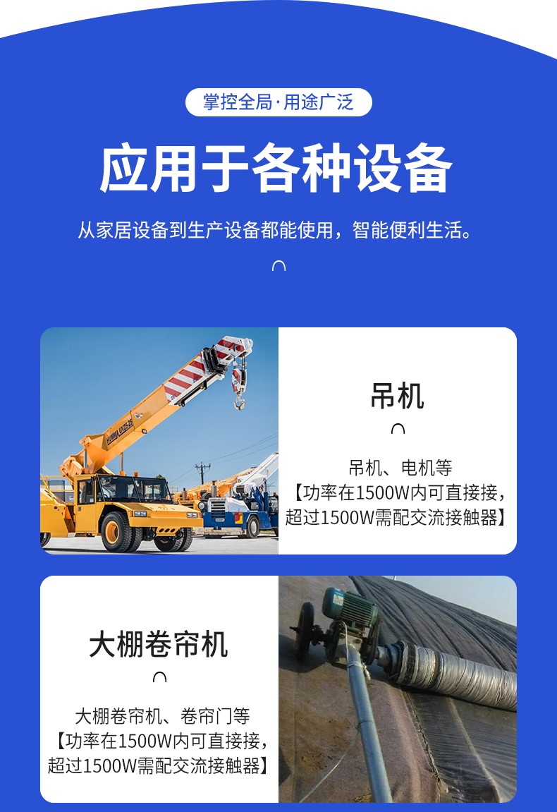 電機正反轉(zhuǎn)遙控開關(guān) 產(chǎn)品規(guī)格 功能特點 資料下載 電機正反轉(zhuǎn)遙控開關(guān)智控無限生活小程序操作系統(tǒng)三種模式切換:點動/自鎖/互鎖控制方式:手動、遙控、手機斷電報警多人管理控制同步使用設(shè)備啟動停止狀態(tài)反饋每路自定義命名手機不限制距離輸入電壓:280v/380v通用應用場景:起吊設(shè)備 ,大鵬卷簾機、升降設(shè)備、正反轉(zhuǎn)電機,工業(yè)信號控制, 投影幕布等