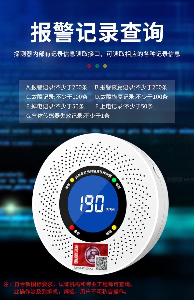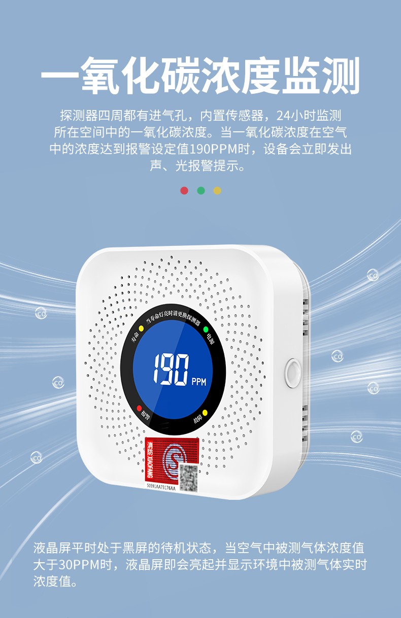 一氧化碳報(bào)警器(型號(hào)PA-007) 產(chǎn)品規(guī)格 功能特點(diǎn) 資料下載 一氧化碳報(bào)警器(型號(hào)PA-007)1.探測(cè)氣體:一氧化碳2.報(bào)警方式:高音報(bào)警、聲光報(bào)警3.材質(zhì):ABS阻燃材質(zhì)4.產(chǎn)品保險(xiǎn):1000萬(wàn)承險(xiǎn)適用場(chǎng)景:適用于廚房、浴室、起居室、火鍋包廂、飯?zhí)玫乳L(zhǎng)時(shí)間空氣不流通的場(chǎng)所安裝一氧化碳報(bào)警探測(cè)器