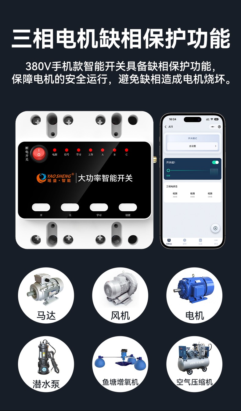 應(yīng)用場(chǎng)景:家具電器、農(nóng)田灌溉、工廠機(jī)房設(shè)備電機(jī)、水泵、機(jī)械設(shè)備、路燈控制等
